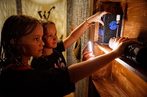 Bij een indoor escapegame spelen de kinderen in een thematische ruimte.